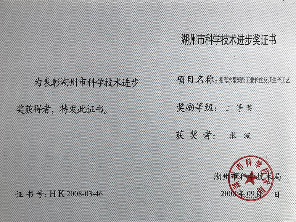 • 2008湖州市科技進步獎三等獎-張波