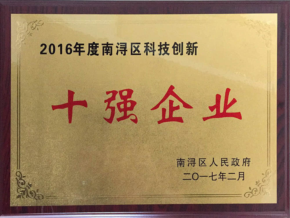 • 2016年度南潯區科技創新十強企業